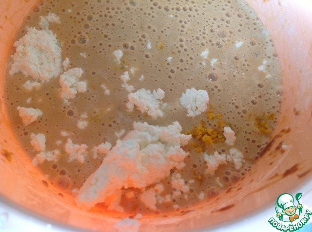 Добавить творог, сок и цедру лимона, взбить