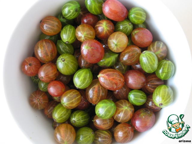 Крыжовник перебрать, вымыть, обсушить, срезать ножницами плодоножки и цветки.