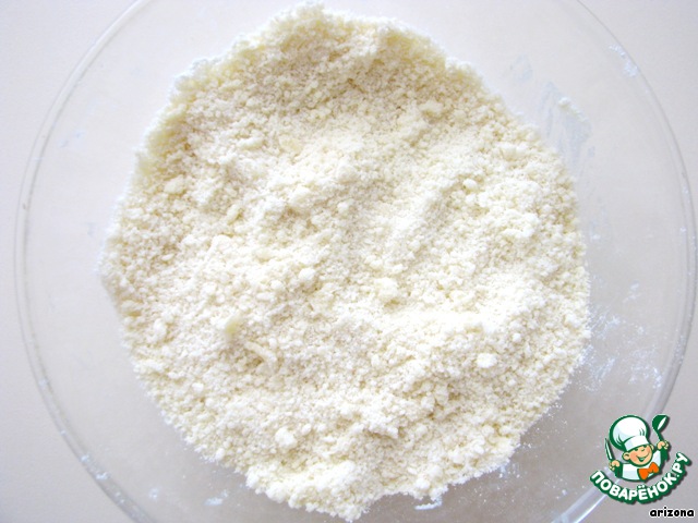 Для посыпки смешать оставшуюся муку 150 г, сахар 75 г, ванильный сахар и 75 г размягченного масла. Искрошить массу руками.