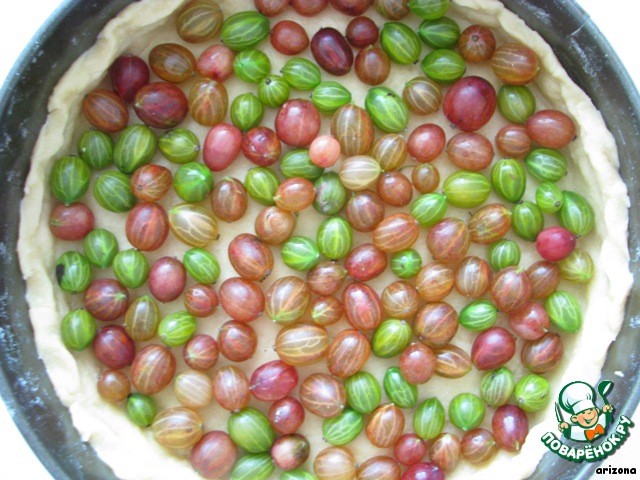 Нагреть духовку до 200 градусов. Выложить на тесто крыжовник.