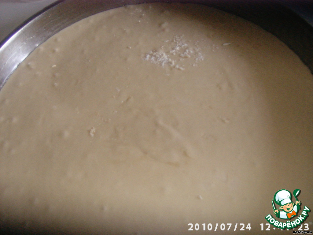 Форму смазываем растительным маслом, выливаем тесто.