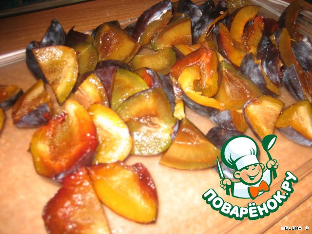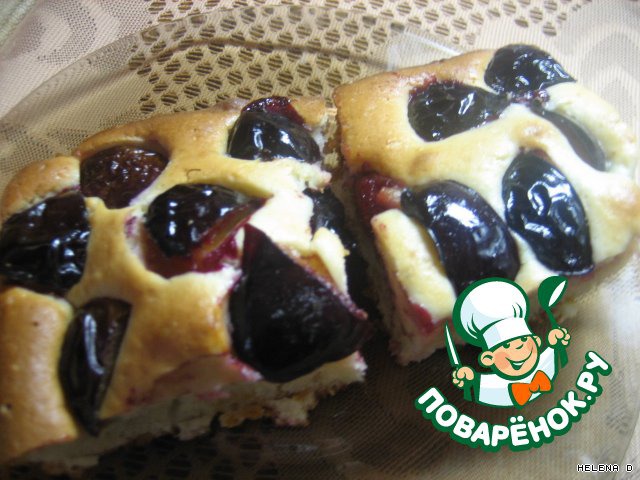 Вылить все в форму и сверху выложить сливы и в духовку. Выпекаем до готовности при t170