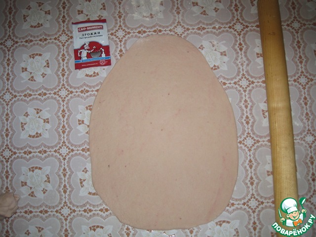 Готовое растоявшее тето с клубникой раскатываем в 2 пласта в форме куриного яйца.