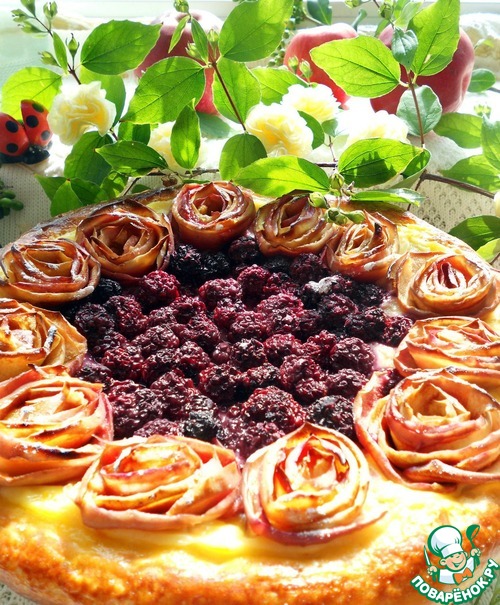 | Предлагаю Вашему вниманию замечательную кулинарную идею по приготовлению открытого яблочно- ежевичного пирога с розами. Пирог получается очень легкий и вкусный. Мне захотелось постараться раскрыть в полной мере вкусовое сочетание ежевики с яблоками, и то, что получилось, очень порадовало. Нежное, воздушное тесто, ароматный крем и волшебная комбинация из ежевики и яблок …. чего еще можно пожелать :) А черный перец добавляет необычную нотку. |