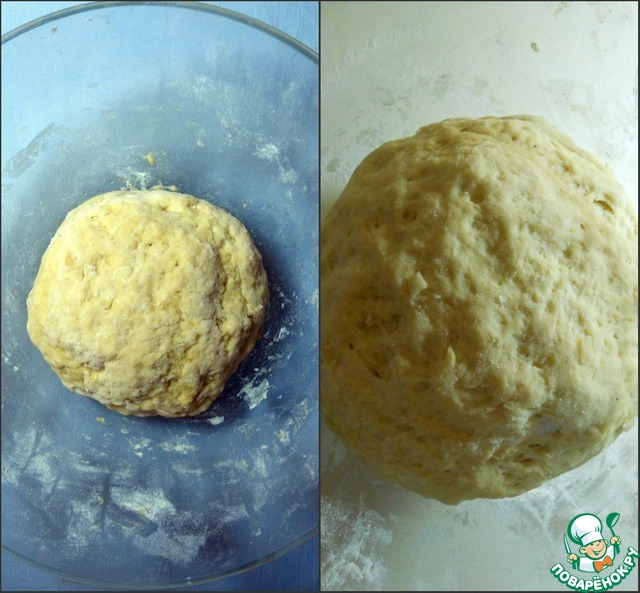 Сначала возьмите 200 г. муки и сделайте в середине углубление. В середину добавьте дрожжи и теплое молоко. Замесите тесто, затем присыпьте полученный колобок мукой, накройте миску полотенцем и дайте ему немного подойти.