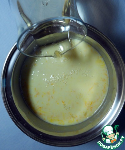 Займемся приготовлением крема. Смешайте муку с сахаром, апельсиновой цедрой и ванилью. Затем добавьте желтки и немного молока, размешайте, чтобы получилась гладкая консистенция. После чего добавьте остальное молоко, а затем белое вино, все хорошо размешайте.