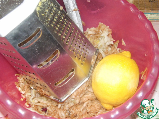 Натираем на терке наши яблочки ( я их не чистила, терла прямо с кожурой) цедру с лимона, и добавляем соком с уже "раздетого" лимона.