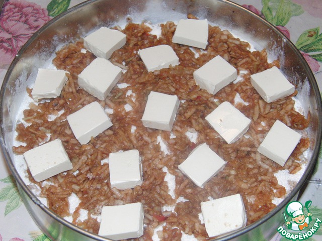 Самым верхним слоем должен быть маргарин (когда он будет таять в духовке он пропитает весь пирог) И ставим пирог в уже разогретую духовку при температуре 180-200 градусов.