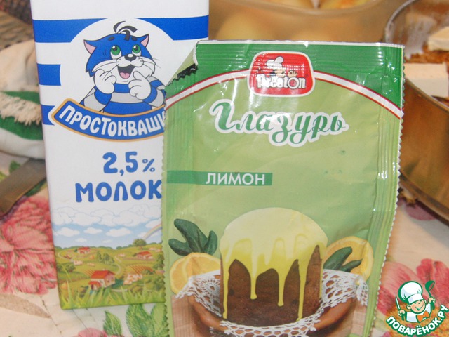 Пока наш пирог готовиться и подрумянивается в духовке, делаем глазурь, я делала готовую, как написано на пакетике.