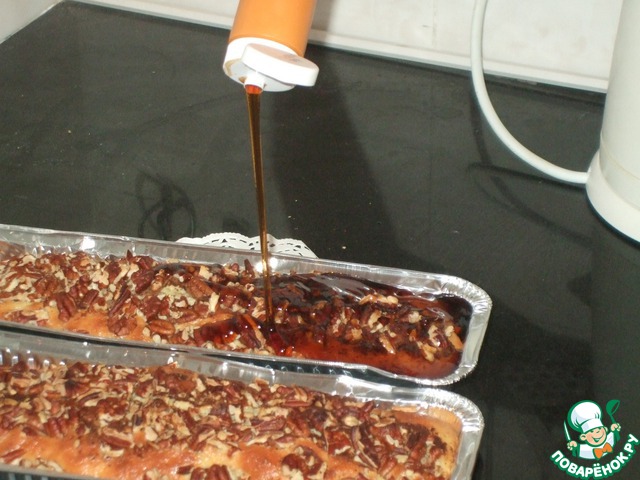 Ставим наше произведение o заранее разагретую до 200 градусов духовку и выпекаем 25-30 мин. Готовность проверяем деревянной палочкой (ну, вы сами знаете..), а между делом достаём сиропчик.