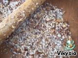 Стакан орехов измельчить с помощью скалки и дощечки.