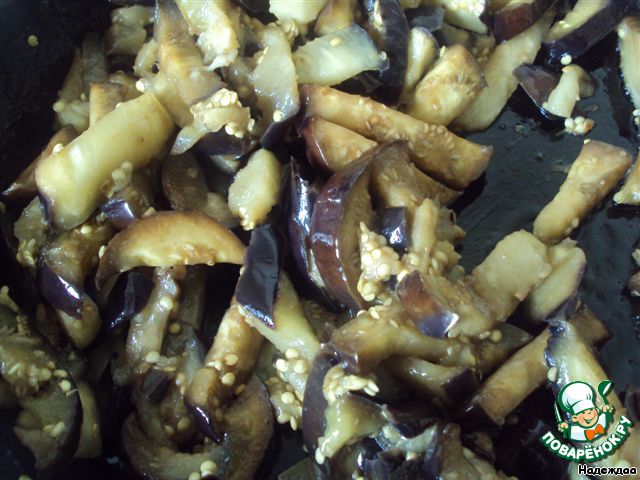 Баклажаны нарезать соломкой и обжарить на растительном масле.