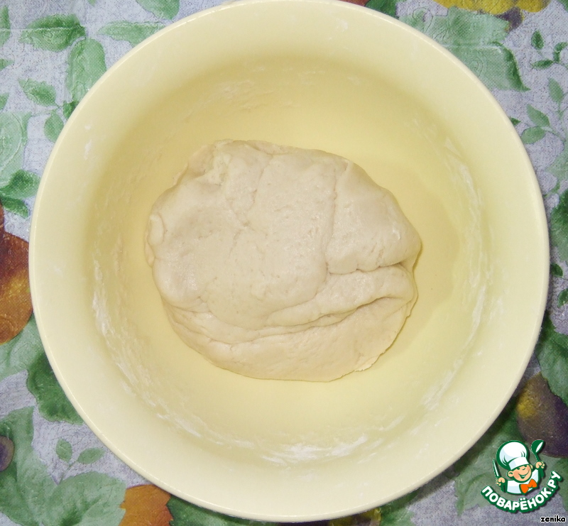 Добавляем муку и замешиваем тесто. Оно получается эластичным и не липким, что мне очень нравится :-)