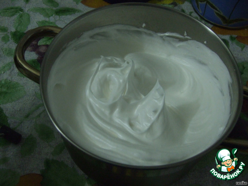 Отдельно взбиваем белки до густой пены (для этого можно добавить лимонную кислоту) и постепенно добавляем 0,5 стакана сахара.