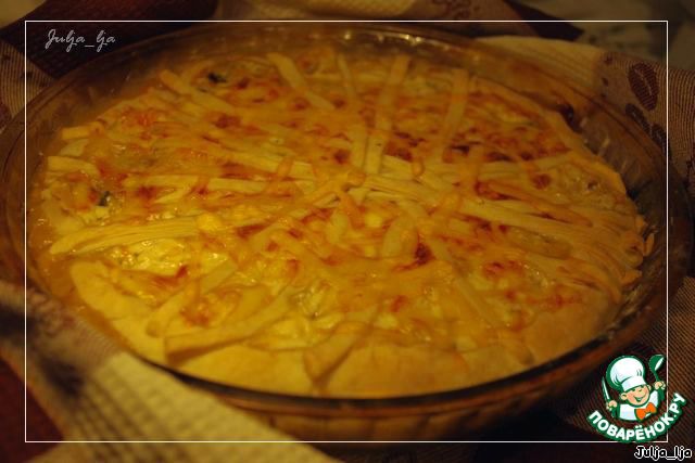 Слоeный пирог с начинкой из лука, опят и сливочно-сырной заливкой