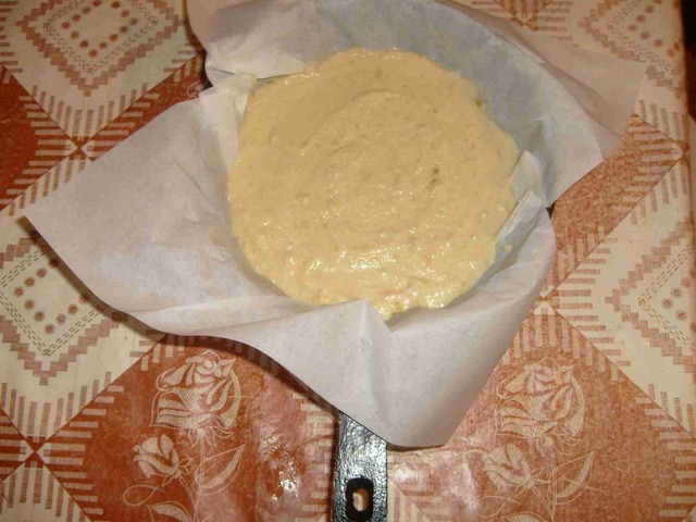 Тесто вылить в проложенную пергаментом форму и выпекать при 180 гр. примерно 1 час. Затем выложить на решётку до остывания