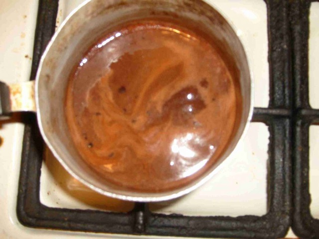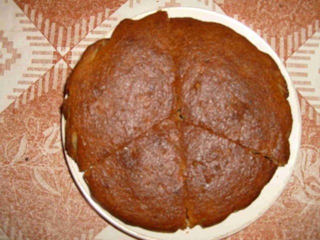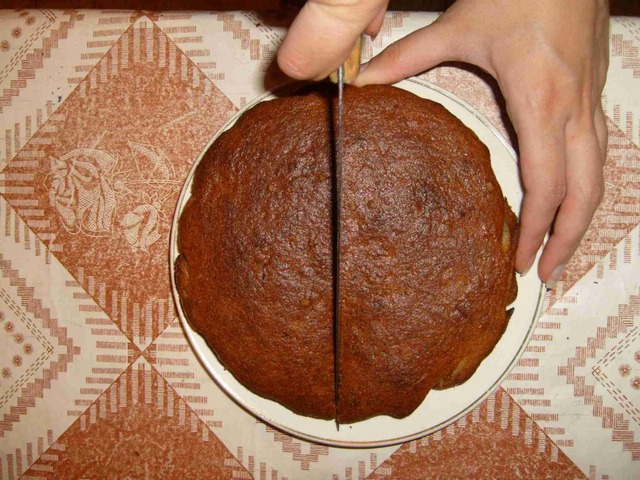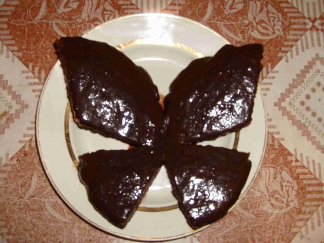 Пока пирог печётся и остывает, приготовить шоколадную глазурь по любому рецепту. (Я делала так: 50 гр сливочного масла, 6 ст. л. молока, треть стакана сахара, 1 ст. л. какао - всё довести до кипения и помешивая поварить минуты две. Когда остывает, тоже время от времени помешивать, чтобы не образовывалась плёнка).