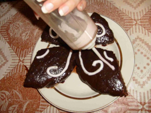 Нарисовать рисунок взбитыми белками, украсить бабочку цукатами и всем, чем захочется. Приятного аппетита!