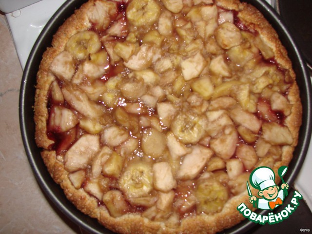 Тесто выкладываем в форму с бортиками, смазываем вареньем, посыпаем панировочными сухарями (они впитывают яблочный сок) и кладем нашу начинку