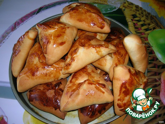 Тесто замешиваю в хлебопечи. Закладываю в печь: муку, дрожжи, сливочное масло, сахар, соль, молоко. Аналогично можно замесить тесто и руками, и оставить подниматься на 2 часа. Пока тесто подходит, делаем фарш: крупно режем сало и обжариваем его на сковороде; крупно произвольно режем лук (1 шт. ) и морковь, обжариваем на сале. Крупно режем печень и обжариваем там же, добавляем соль, специи. Накрываем крышкой и тушим около 15 минут, не более, иначе будет жесткой. Даем остыть. Начинаем перекручивать пережаренные сало, печень, лук, морковь, добавляем туда же еще 2 сырые луковицы (будет сочнее). Растапливаем сливочное масло, добавляем в фарш, перемешиваем до эластичности. Кстати, получается вкуснейший паштет, который можно просто мазать на хлеб и есть (если останется от пирожков). Берем подошедшее тесто, режем на кусочки, раскатываем (у меня получилось 20 шт. ). Кладем фарш на тесто, залепляем, я делала треугольные. Выкладываем на смазанный маслом противень. Смазываем сверху желтком. Ставим в разогретую до 200 градусов духовку на 30 минут.