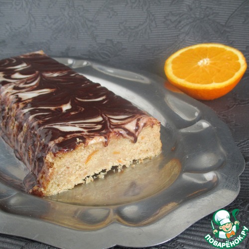 Этот бисквит можно использовать для тортов. Я же его просто покрыла двумя видами глазури, получилось вкусно. Для белой глазури смешать оставшийся апельсиновый сок с сахарной пудрой (примерно 100 гр, может понадобиться больше или меньше). Для шоколадной глазури смешать 1 ст. л. какао, 1 ст. л. сахарной пудры, 1 ч. л. картоф. крахмала и 2 ст. л. холодной воды. Поочередно нанести два вида глазури на бисквит и сделать разводы спичкой. Со временем глазурь застывает.