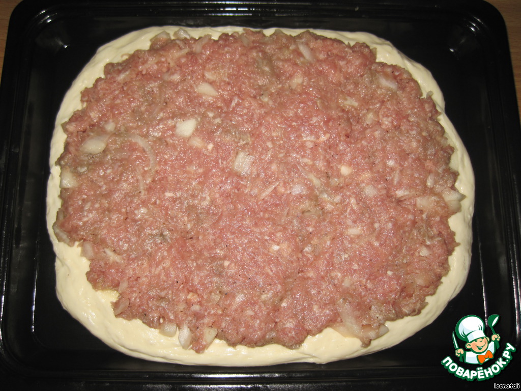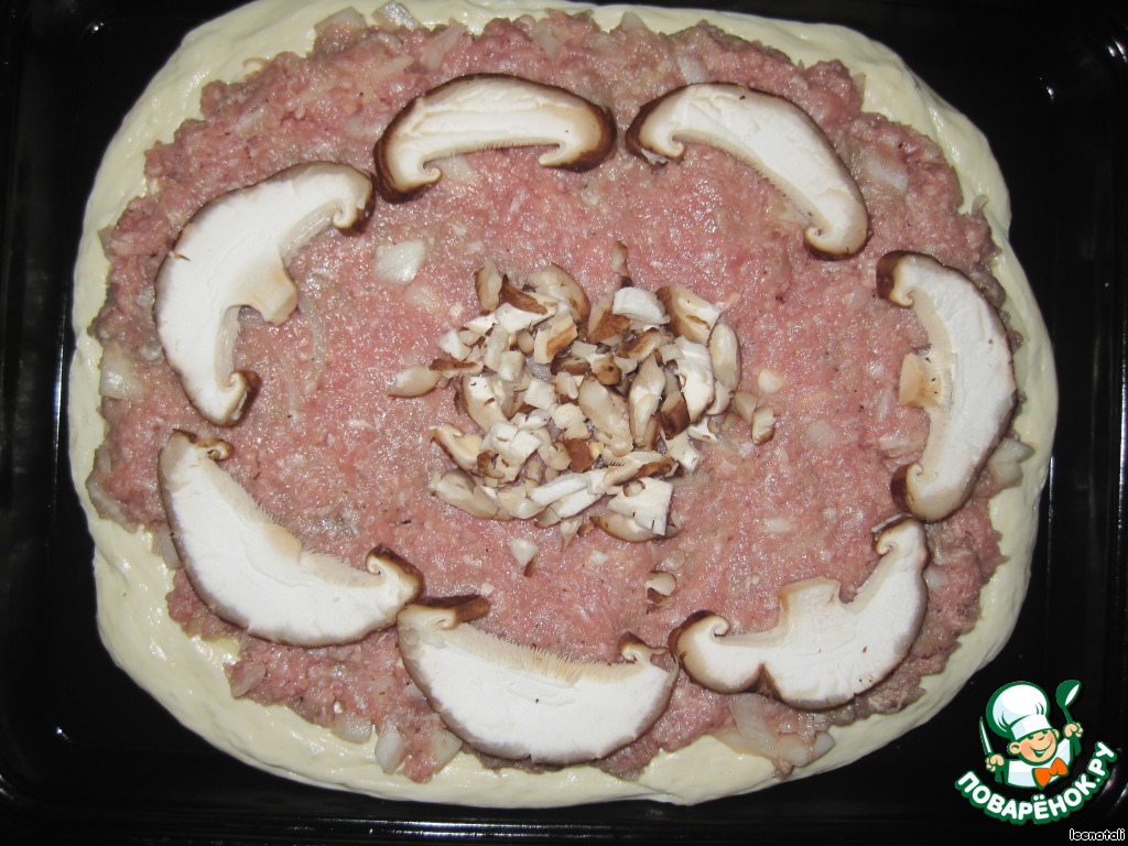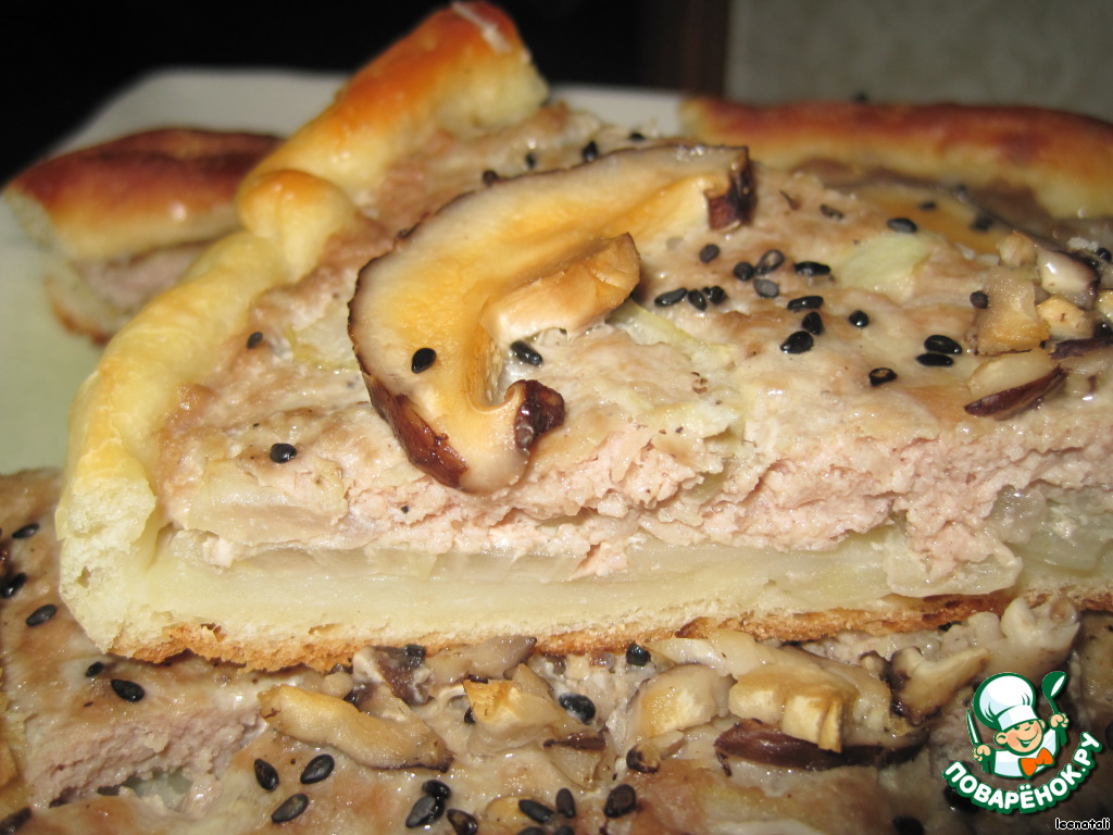 | Очень нежный пирог с мясом, картофелем и грибами. |