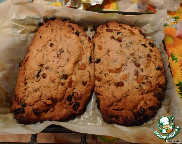 | Традиционный Рождественский штоллен. Печется недели за 2 до Рождества (НГ) и дозревает в холодном месте. Подобие кекса с большим количеством сухофруктов. Но гораздо вкуснее кексов. В процессе созревания штоллен становится гораздо ароматнее!! Все таки это настоящая рождественская выпечка. Пеку уже третий раз. Надеюсь, получится также вкусно. |