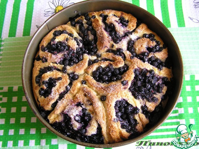 Раскатать тесто и посыпать ванильным сахаром. Выложить ягоды на тесто. Аккуратно скатать по длине и разрезать на 12 ломтиков. Переложить в смазанную маслом форму.