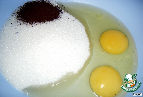 1. Яйца взбить с сахаром и пакетиком растворимого кофе.