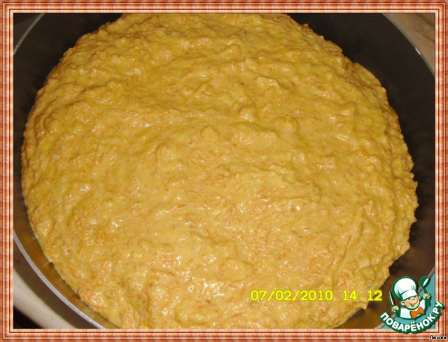 Нагреть духовку до 180 град. Тесто выложить в смазанную жиром форму диаметром 26 см.