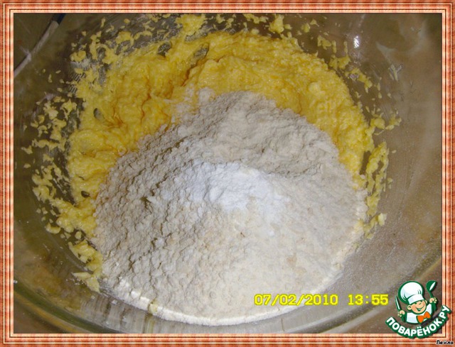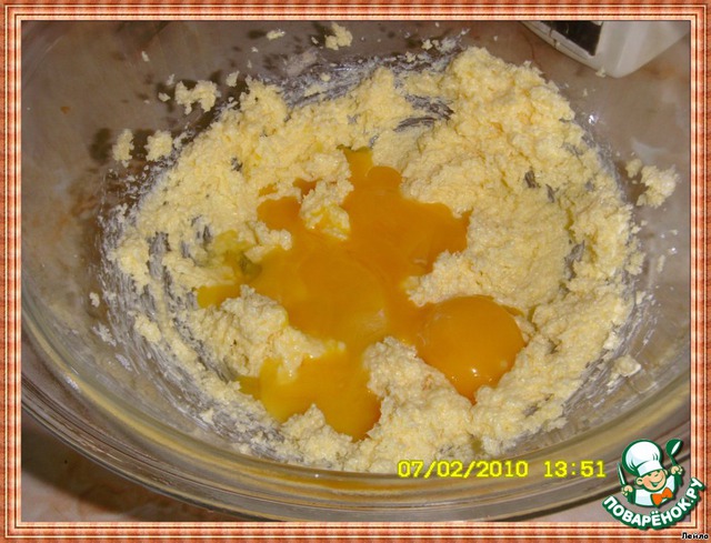 Яичные белки взбить с 50 г сахарного песка и добавить в тесто.