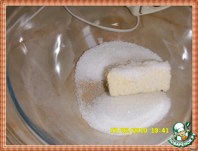 Теплое сливочное масло растереть с 50 г сахарного песка,