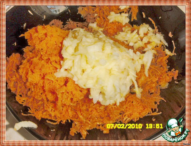 Очищенные яблоко и морковь натереть на мелкой терке.