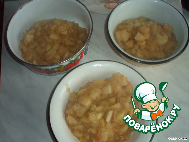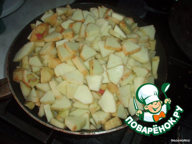 Яблоки почистить и порезать. Как можна мельче. У меня на фото неочень мелко.Можна даже потереть на крупную терку. И сложить их в кастрюлю или сковородку+ 0.5 ст. воды и тушить до мягкости, но не превращая в абсолютно однородное пюре.