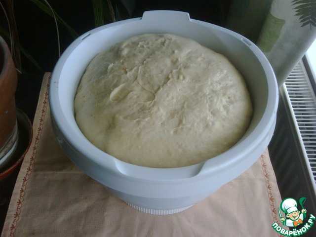 Месить тесто надо не менее 10 минут. Я это делаю настольным миксером, но можно замесить и в хлебопечке, и вручную. Тесто ставим в теплое место для подъема. Оно должно увеличиться минимум в 2 раза. У меня это занимает часа полтора-два.