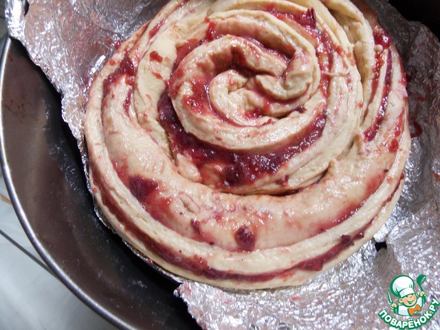 Не переживайте, если ваша спираль получилась неровной или осталось место между пирогом и краем формы. Во время расстойки и выпечки пирог поднимется и все шероховатости будут сглажены.