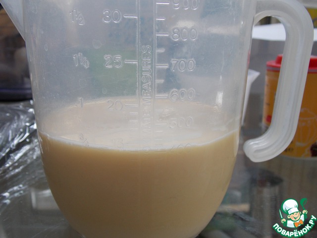 В растворенные дрожжи добавляем молоко и яйцо, перемешиваем до однородного состояния и выливаем в мучную смесь.