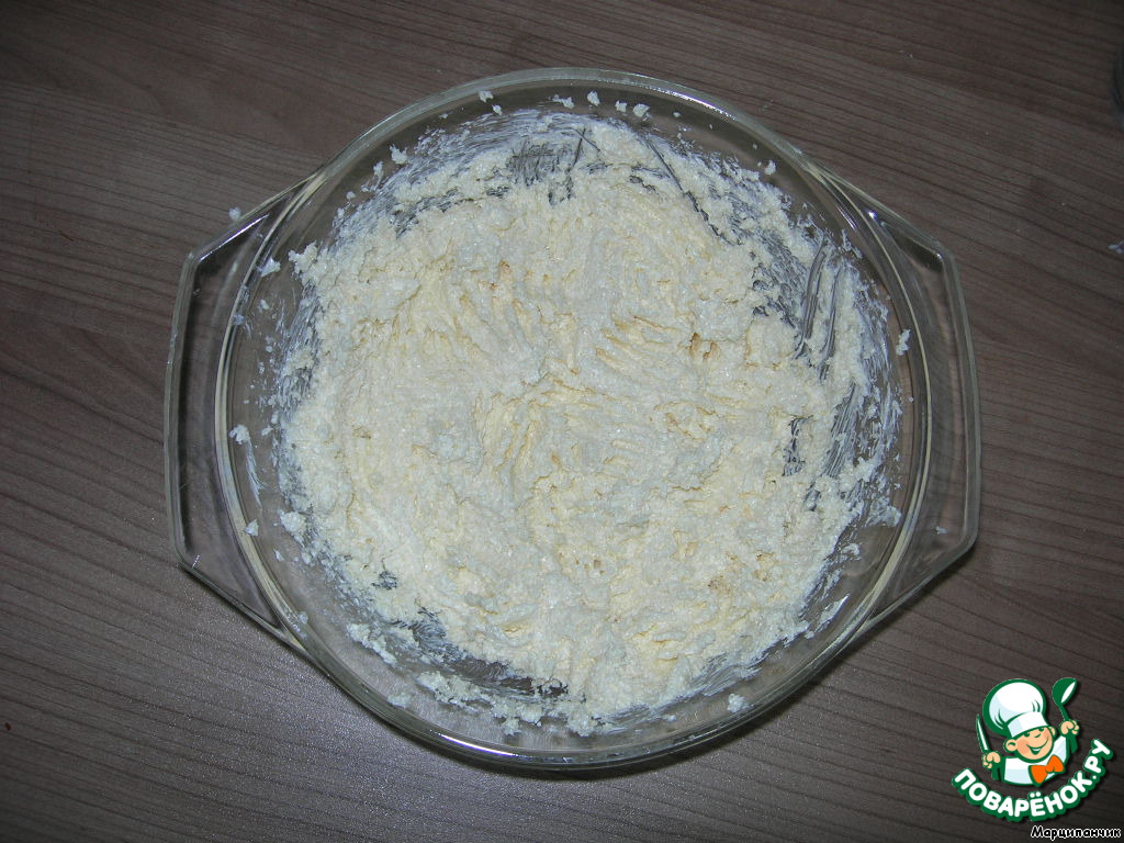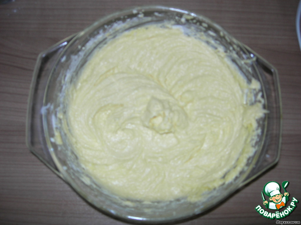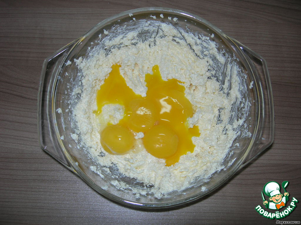 Отделить белки от желтков. Желтки добавить к маслу с сахаром и перемешать.