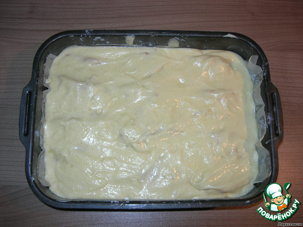 выложить половину теста в форму (форму выстлать пергаментом и смазать маслом)