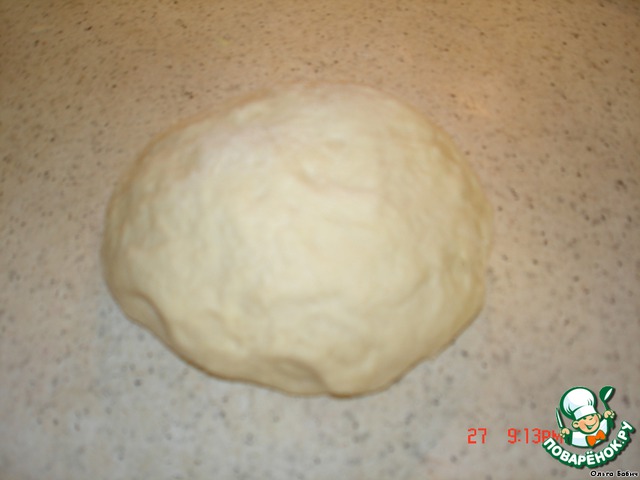Раскатать тесто и уложить на противень, смазанный маслом,