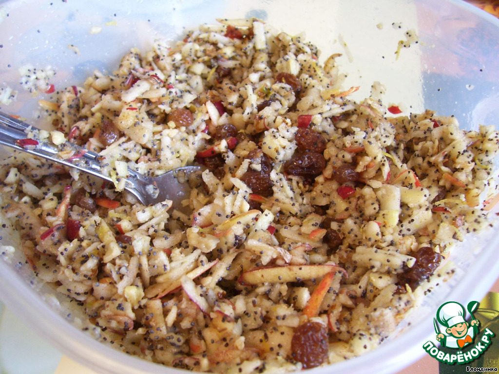 Ароматный яблочный пирог с орехами, маком и изюмом