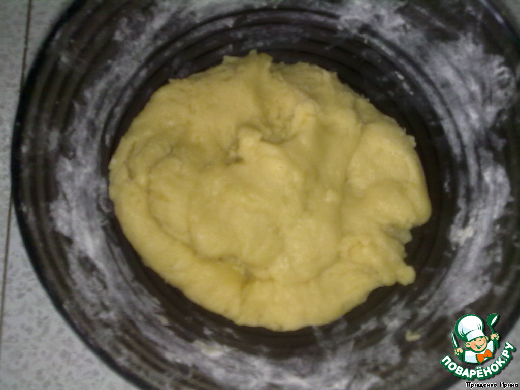 в полученную массу добавляем 2 яйца, соду, муку - замешиваем тесто (оно должно быть эластичным).