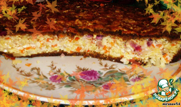 У меня получилось два пирога... теще надо было угодить, а если в большой форме, то можно все вместить в один пирог.