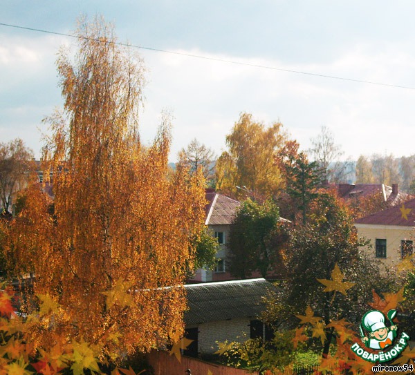 Перед тем как начать готовить пирог, посмотрите в окно… Проникнитесь уходящими красотами золотой осени… Включите на кухне блюз или другую ласкающую душу музыку и начните колдовать над нашим пирогом, начиняя его осенними мотивами…