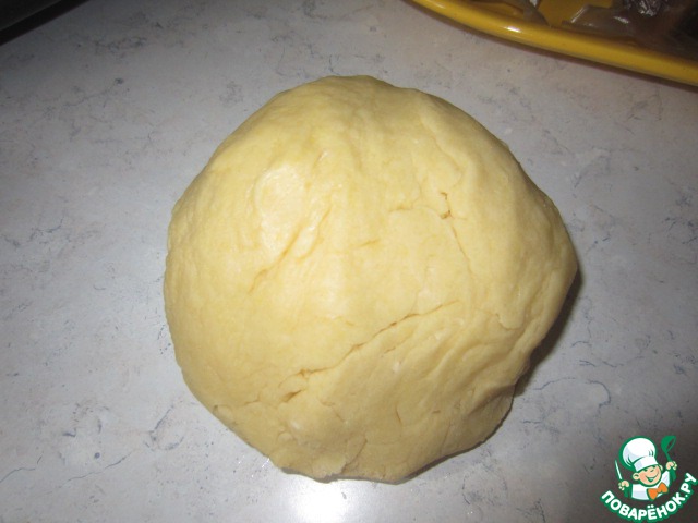 2. Затем добавляю масло и замешиваю гладкое эластичное тесто. Заворачиваю тесто в пищевую плёнку и убираю в холодильник на 1 час.