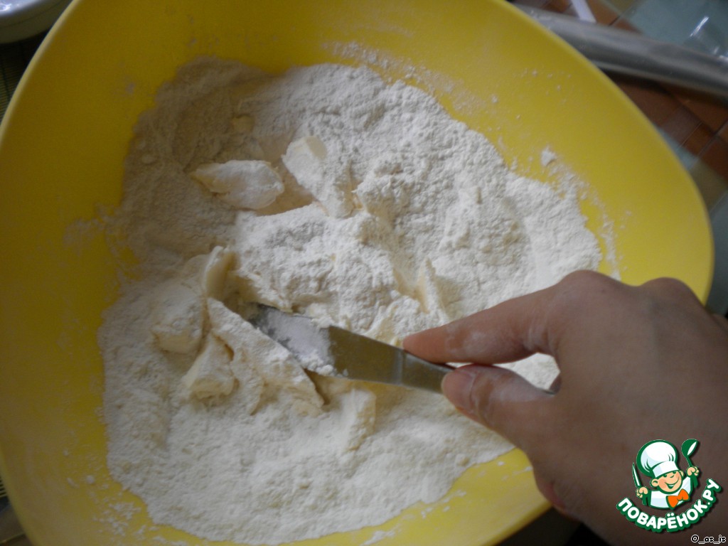 Масло брала облегченное, оно так и норовило подтаять, потому в крошку измельчать не стала.