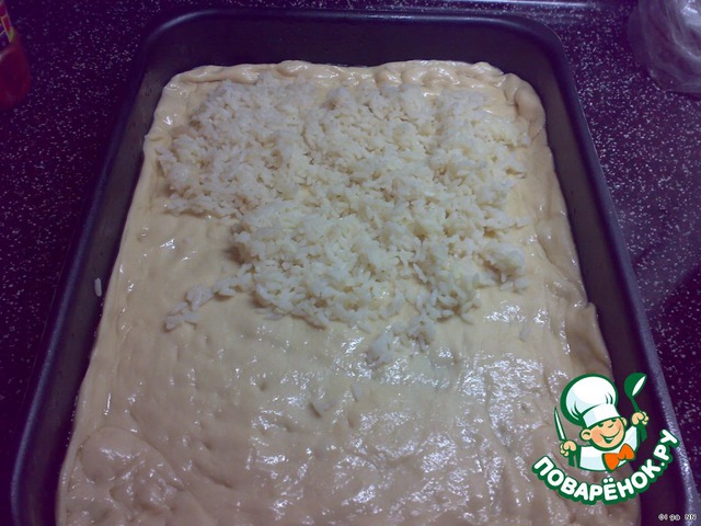 Выложить на тесто рис.