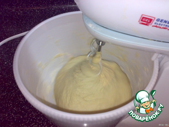 Добавить яйца и растительное масло и замесить тесто, постепенно вливая теплое молоко. Хорошо вымесить, чтобы тесто легко отставало от рук (если миксером, то от стенок чаши). Тесто должно быть нежное, шелковистое на ощупь, очень эластичное.