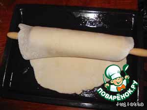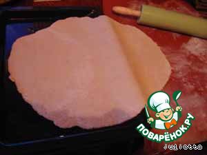 положите его таким образом, чтобы половина круга оказалась на противне, а другая на рабочей поверхности.