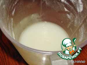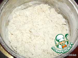 Просейте муку. Смешайте муку и дрожжевую жидкость вместе,